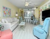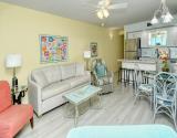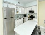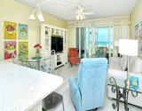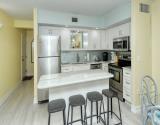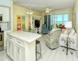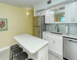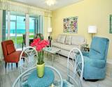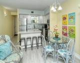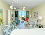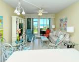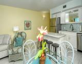 Our condo features a breakfast bar island, plus a spectacular Gulf view from the open kitchen/dining/living area leading to the screened beachfront lanai. Tile floor through out the entire unit.