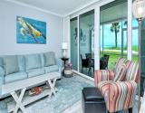 Recently updated condo features a breakfast bar , a spectacular Gulf view from the open kitchen/dining/living area leading to the screened beachfront lanai. The split floor plan insures that the quiet bedrooms are separated from family activity areas in this “all-on-one-level” condo.