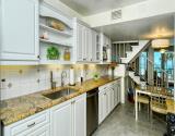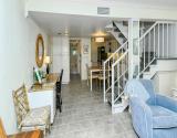 This spacious unit is bright and breezy with new décor and renovated kitchen and baths featuring sparkling granite and tile. The open floor plan provides sweeping views of the beach and gulf from the kitchen to the living and dining area, and on to the private porch and steps leading to the beach. The bedroom on the 2nd level has floor-to-ceiling windows, and sliders to a sundeck overlooking the beach.