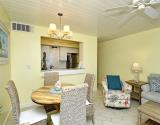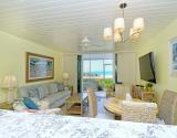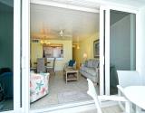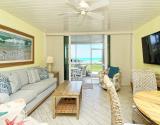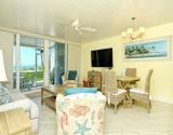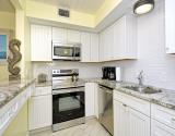 Our condo features a breakfast bar , plus a spectacular Gulf view from the open kitchen/dining/living area leading to the screened beachfront lanai. The split floor plan insures that the quiet bedrooms are separated from family activity areas in this “all-on-one-level” condo.